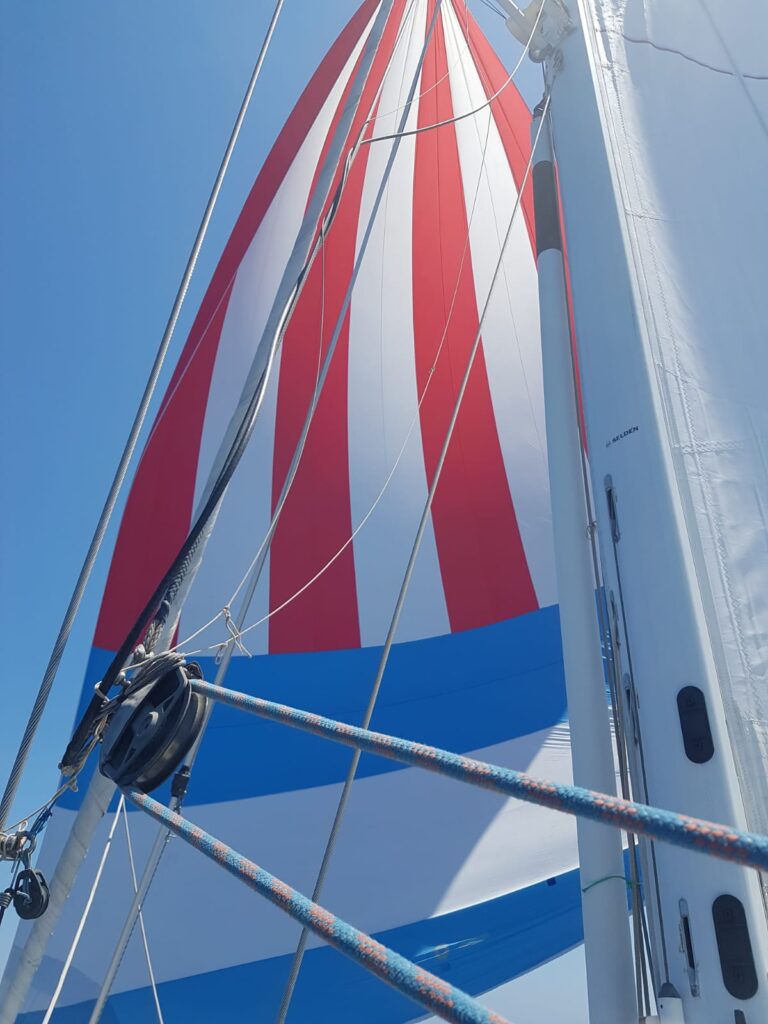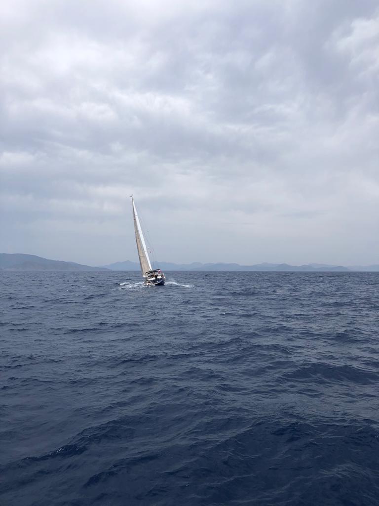 On May 9, 2021 we headed back to Marmaris to have a little more than a week to get things ready for our departure. We were very fortunate to have good wind and to have our friend Hans H. join us for the 45 nautical mile/5.5 hour sail back. Hans has a FARR 56 and he is very experienced with boats similar to ours. His tips are invaluable and we can’t thank him enough for spending the day with us. With an extra pair of hands we were even able to try our gennaker.