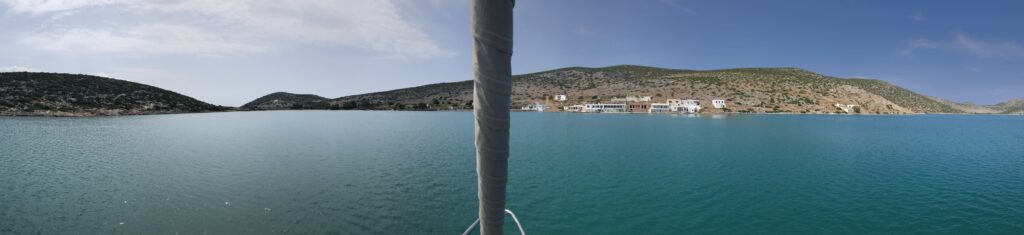 From Maganari we had a two-hour headstart for the passage to Astipalaia. We had a beautiful eight-hour motor-sail. The winds were moderate and consistent. We saw a large and very playful pod of dolphins, they swam with us for a while (sorry, I was too excited to get pictures). The small hidden anchorage at Pethi, Astipalaia is pretty much the opposite of the hopping Santorini we felt only a couple days ago.