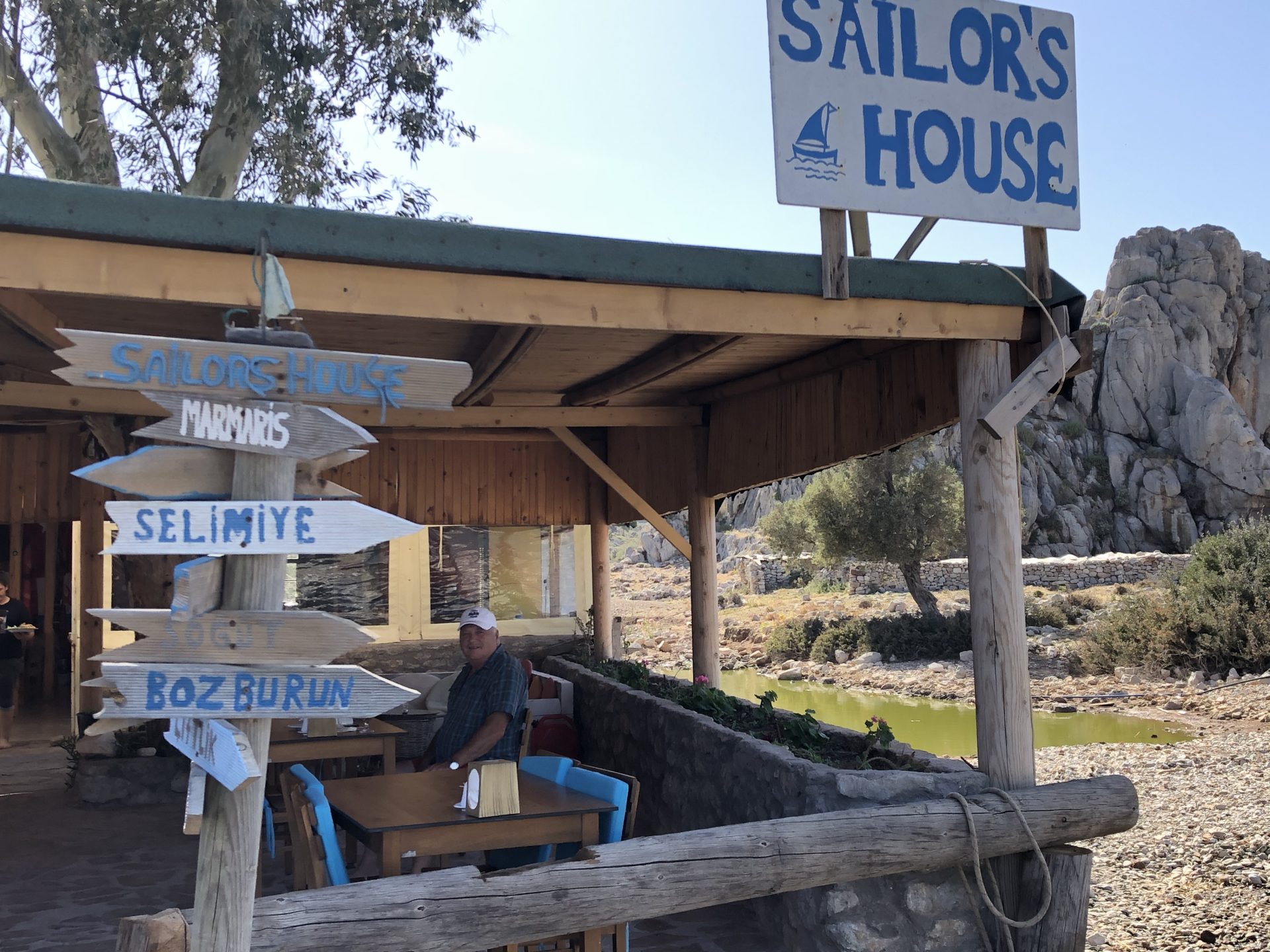 The steam was totally worth it, Bozuk Buku is charming. We are moored with lines to the dock at Sailor’s House. There are very few people here; definitely more donkeys and goats. We had a delicious (if not cheap) dinner at Sailor’s House last evening. Bozuk Buku has the remains of a citadel at the entrance. Rog and I scrambled over the rocks for a hike there this morning.