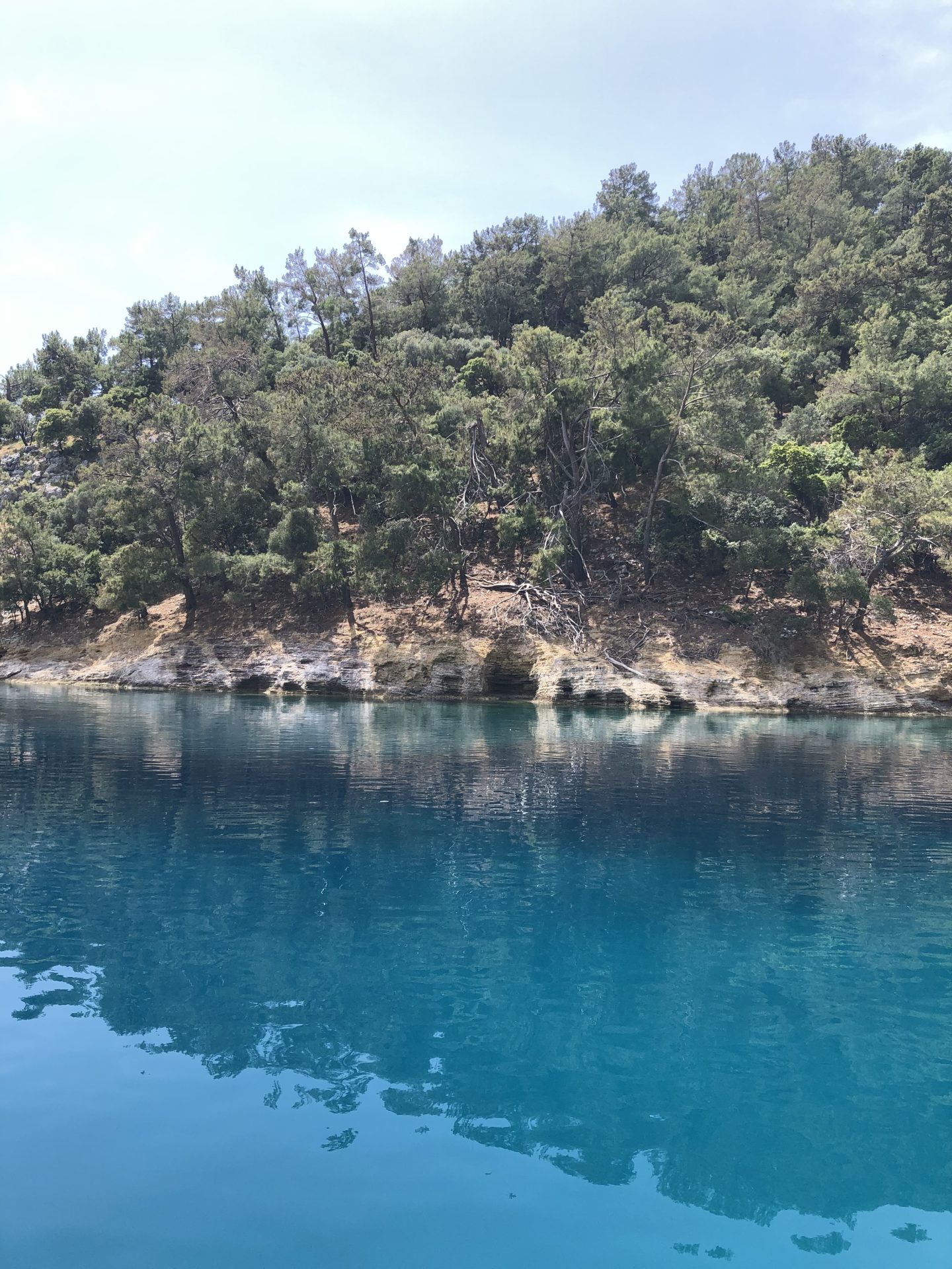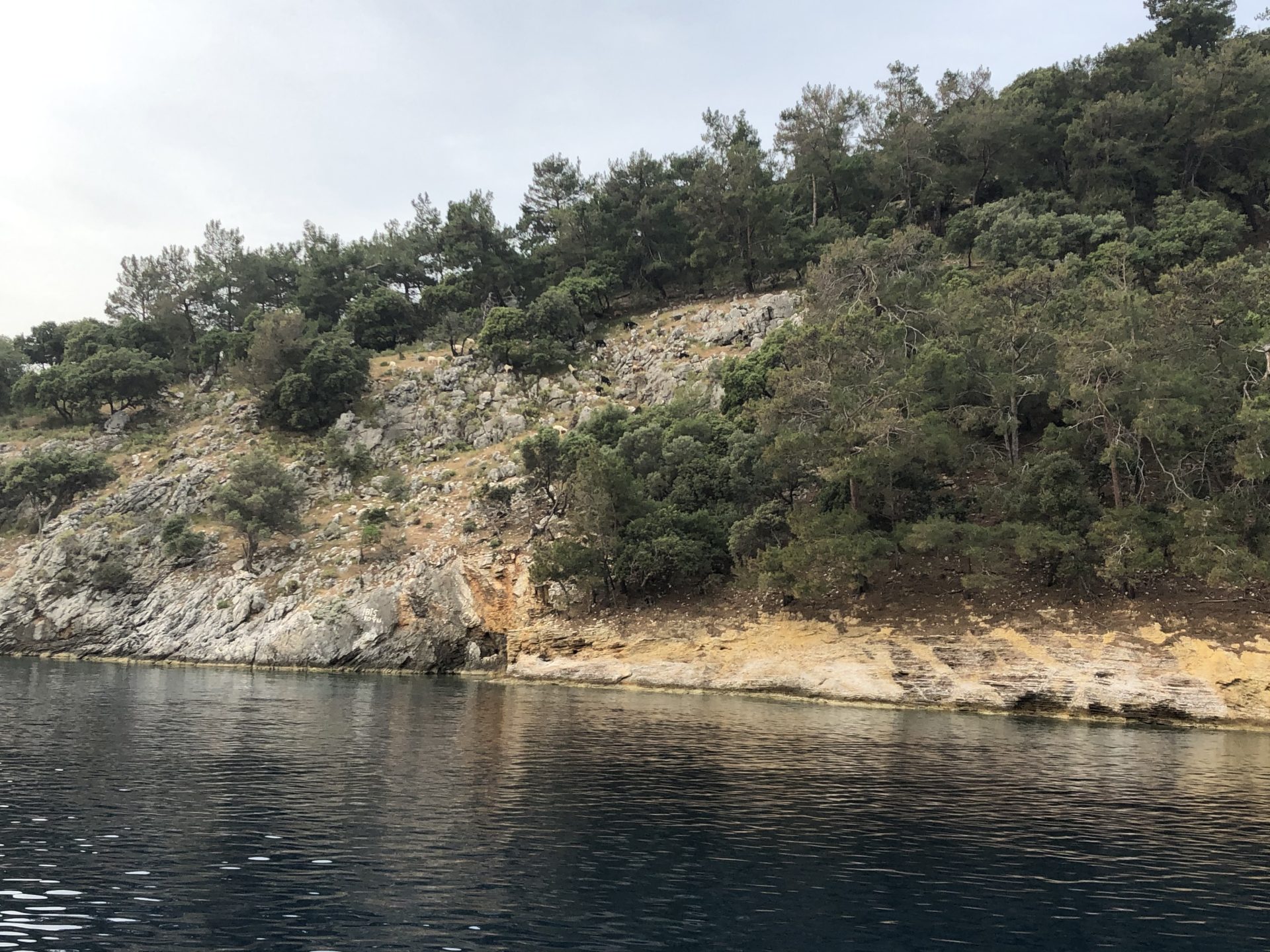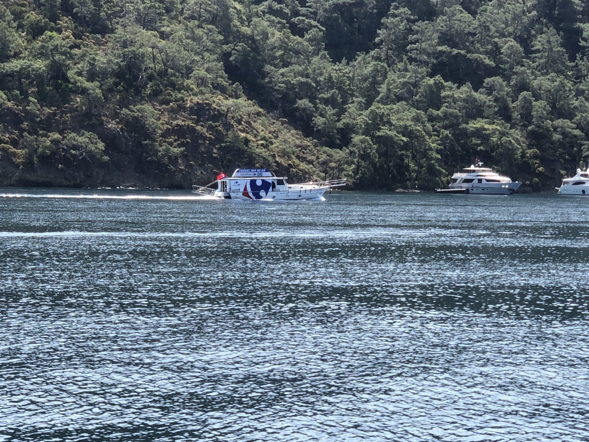Skopea Limani is a protected bay and group of small islands right at the entrance to Fethiye Korfezi, the gulf that includes Fethiye and Gocek. There are many anchorages to explore in Skopea Limani. Leaving Gocek, we spotted the grocery boats and the ice cream gulet. At that point we were feeling pretty sure we will be able to make the best of this situation. First stop was a quick hop to Yassica Adalari where we anchored with lines to shore.