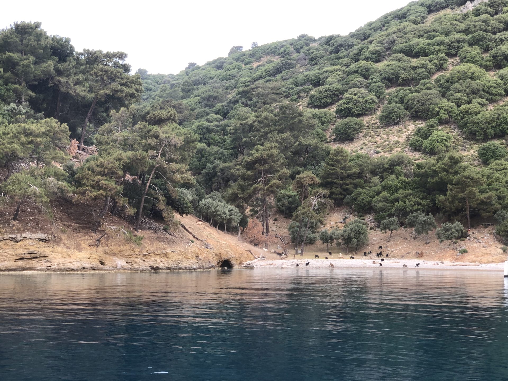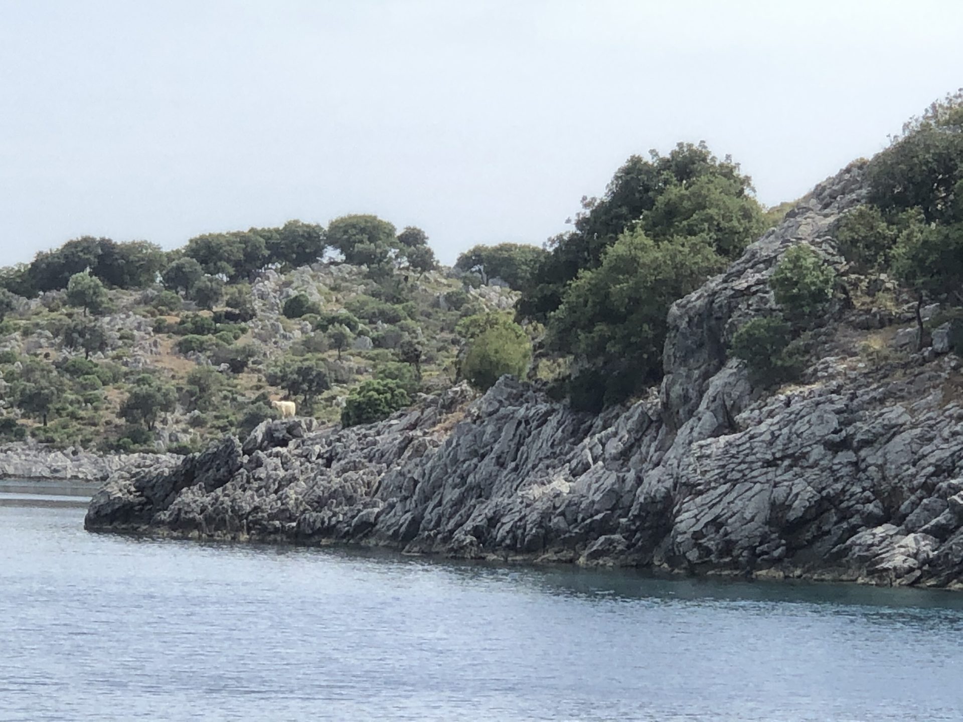 We left Skopea Limani Monday afternoon and motored the short distance around the corner to Kizikuyruk Koyu. Waking up Tuesday morning in this little cove was a special treat. It was very calm, the wild herbs and flowers on the hillside scented the air. Before long we heard the bleating of the goats and the clanging of their bells.