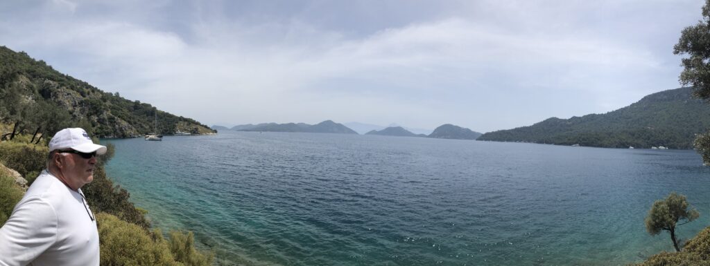 We got underway fairly early for a longer trip to Bozuk Buku. Bozuk Buku is past Marmaris, more north and west from our previous travels along the southeast coast. So far what our friend at Yacht Marine and fellow Canadian, Daryl on Vimy, told us about the weather holds true–no matter which direction you are headed, the wind is always coming towards you. Unfortunately another day of steaming; about seven hours.