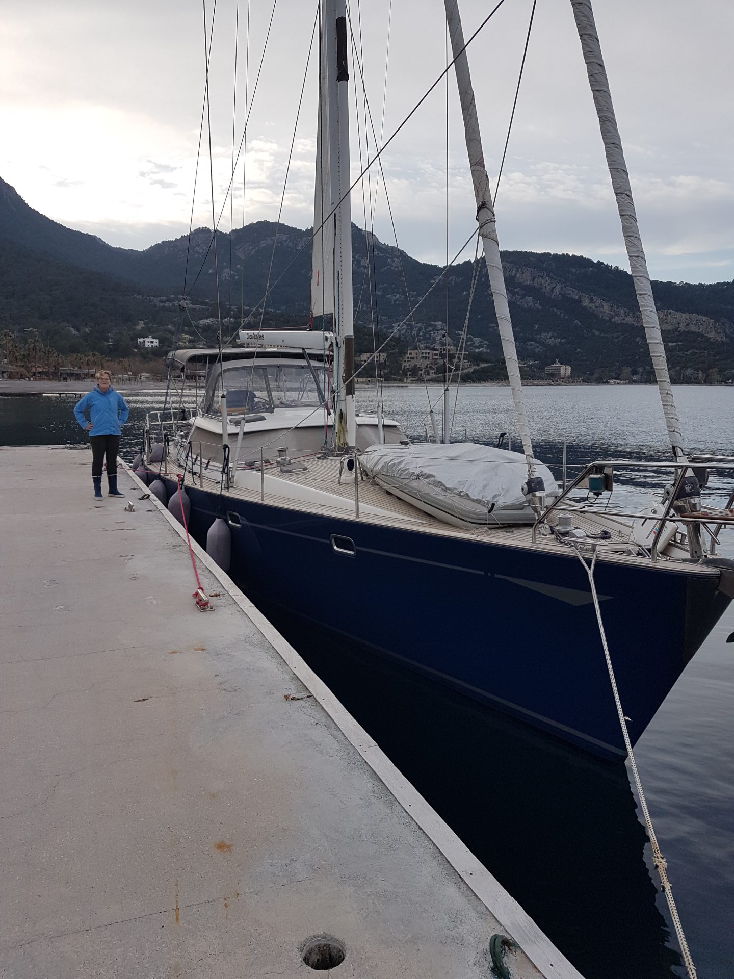 We finally had the necessary documents in hand and fair weather for sailing on March 11th. We set out cautiously and sailed around the huge Bay of Marmaris getting a feel for the boat and practicing using the sail hydraulics. We tucked in at Kumlu Buku for our first night aboard away from the dock.
