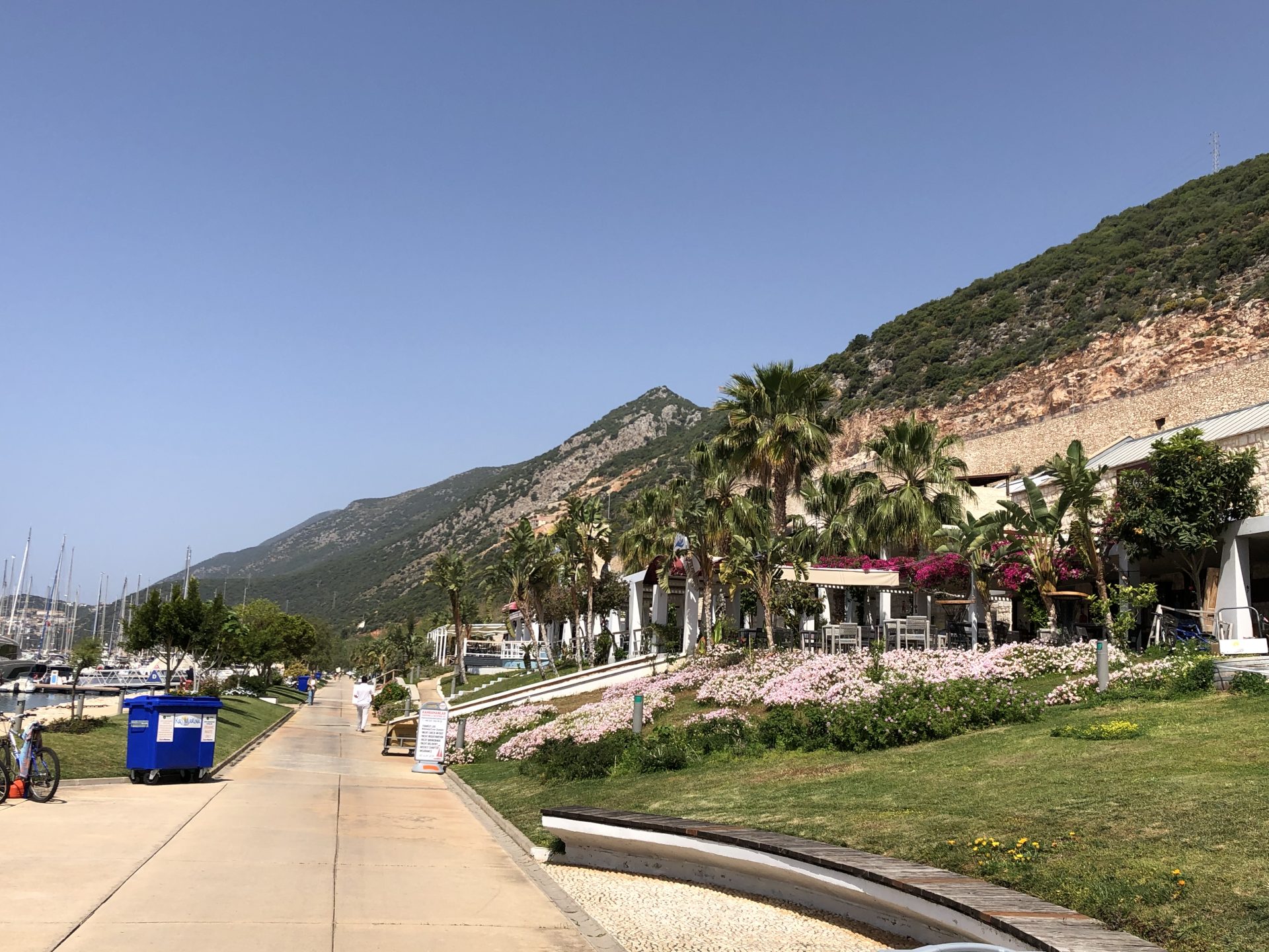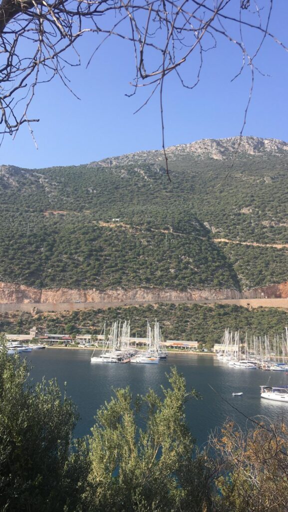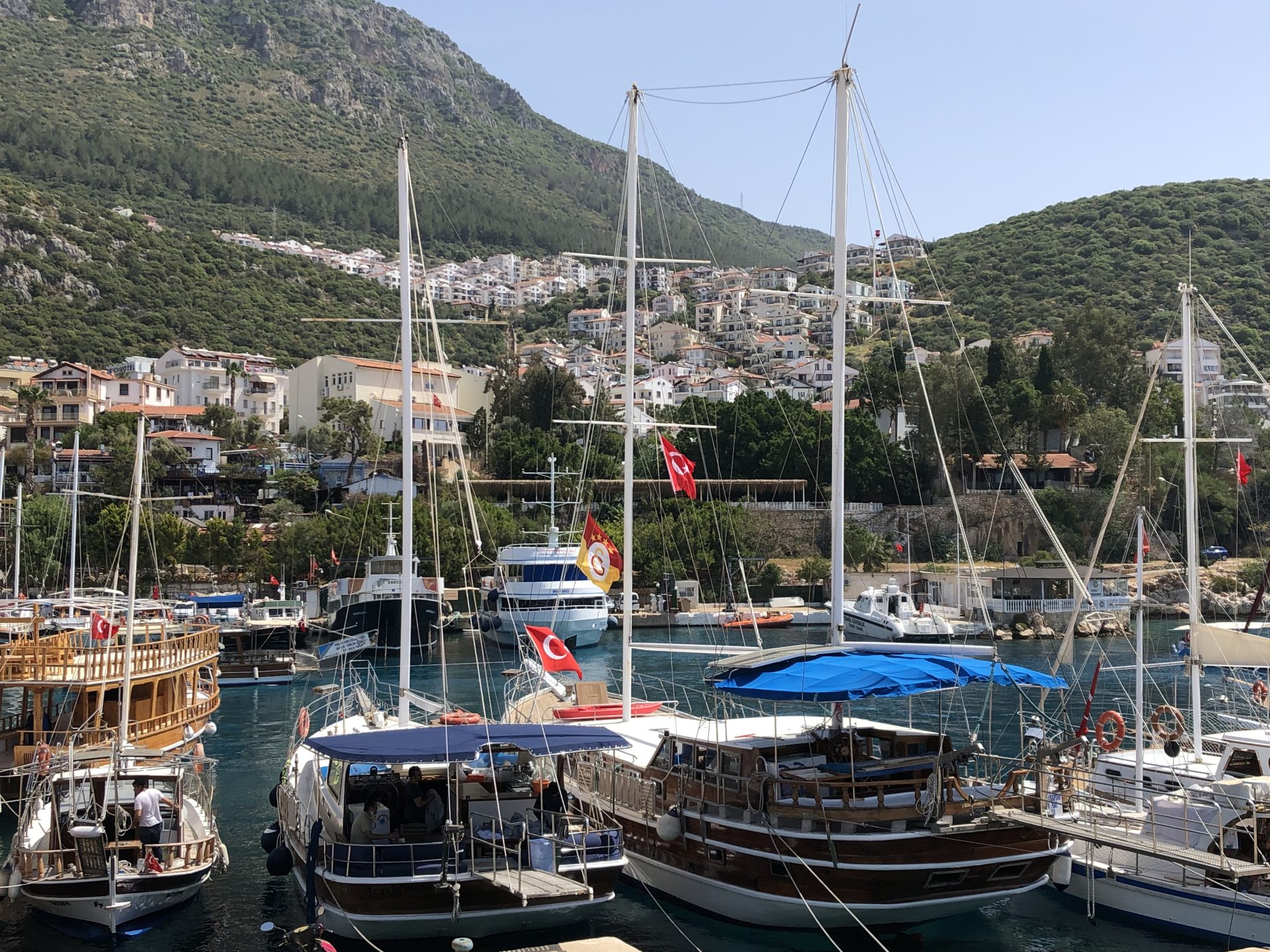 Kale Koy was lovely; but, we were more than ready to leave after three days of lockdown. We were lucky the weather cooperated because it would not have been a good anchorage if we had any kind of wind. On Monday we headed back to Kas. We were looking forward to a land day to provision and take care of some laundry. We had planned to stay at the town quay; but, it was quite crowded with local boats and gullets. We diverted to Kas Marina. The marina at Kas is lovely and there are a couple of nice anchorages nearby. The town is about a 10-15 minute walk.