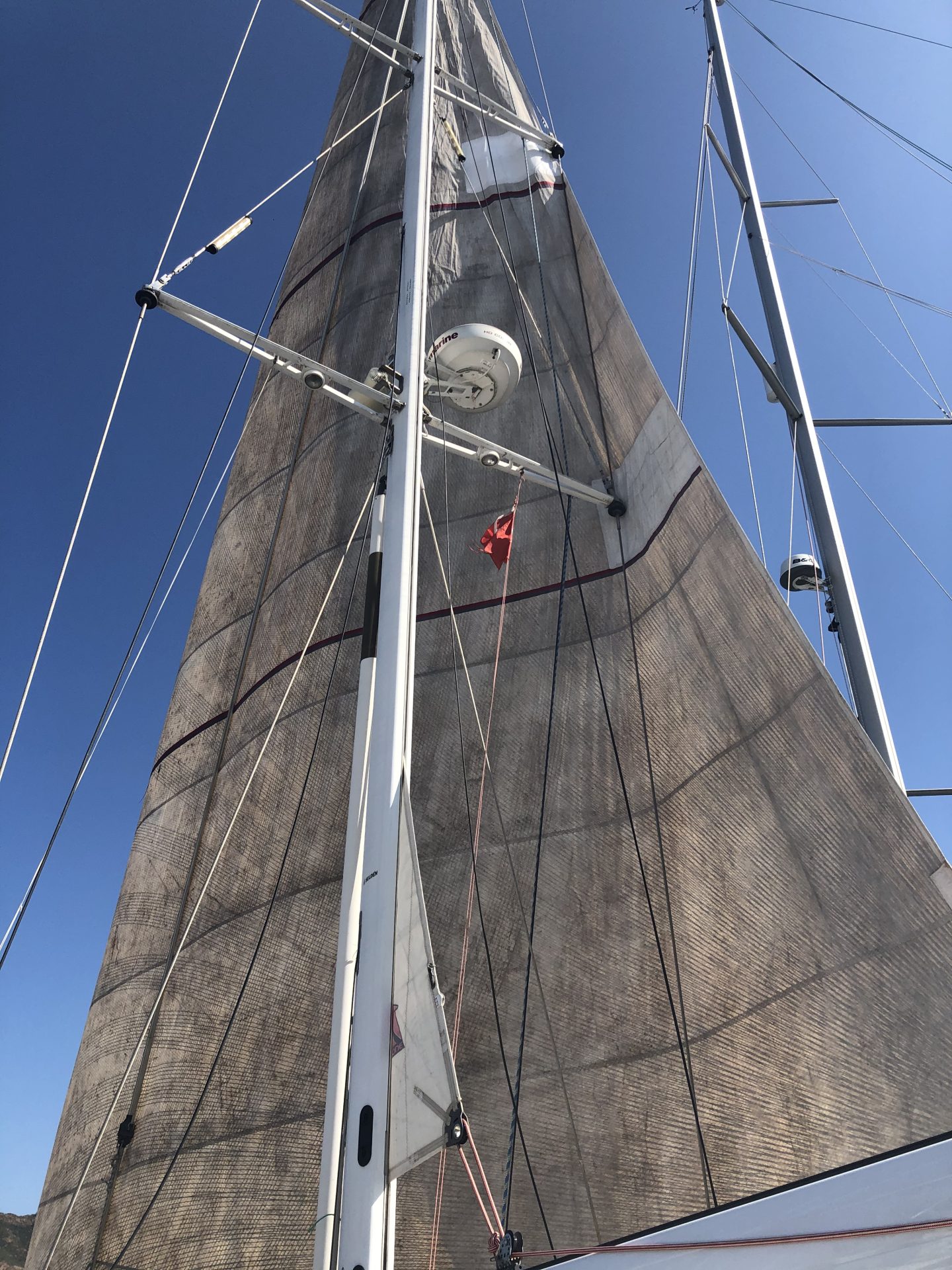 We don’t like the look of the genoa; but, I think it is more just the colour of the poor thing. We expect to hear back on the recut sail this coming week.