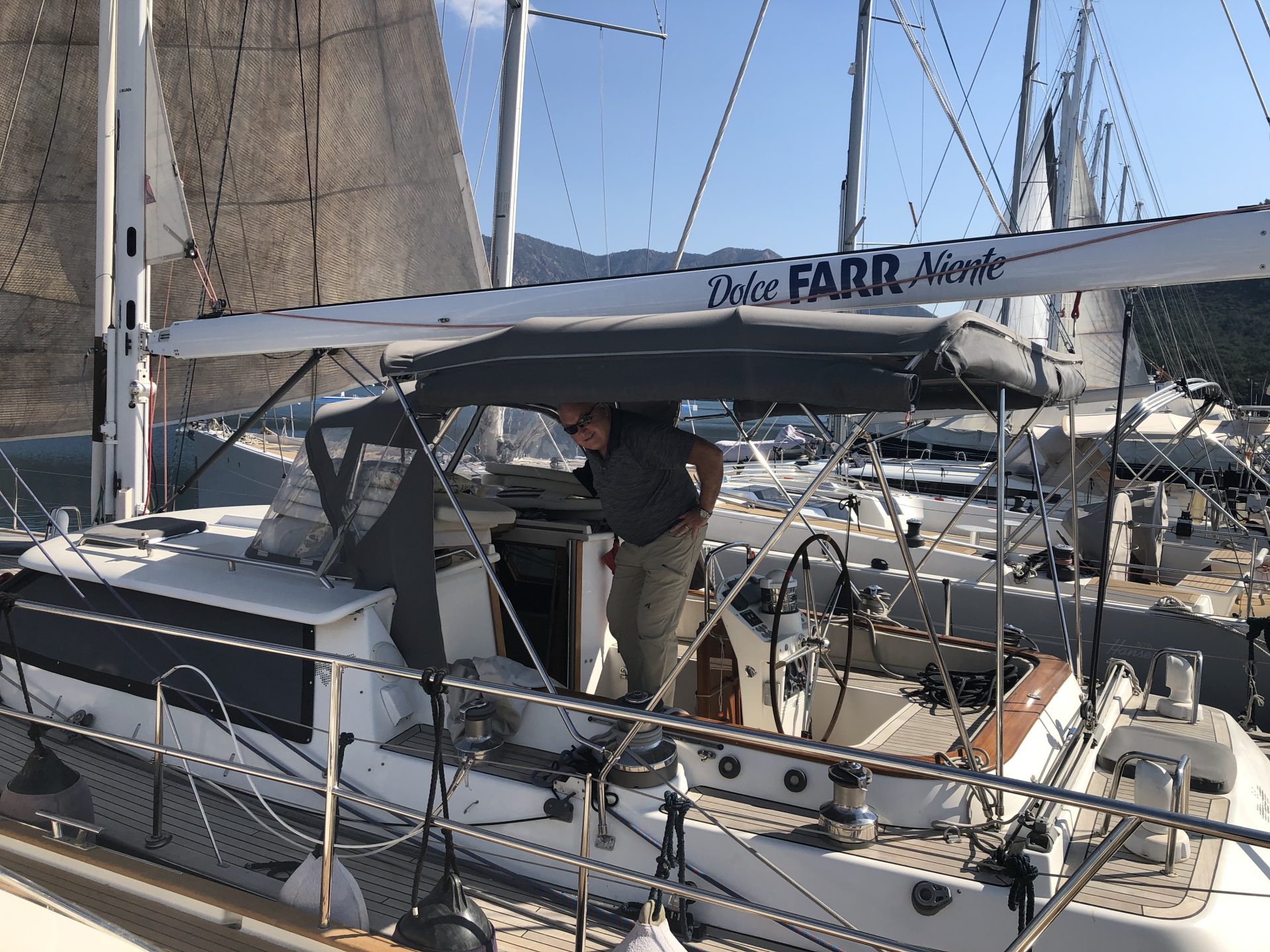 That meant that Tuesday was once again deck cleaning day. It was quite cold for the rest of the week. We had a couple of days with high wind gusts. The electronics have been checked, the AIS was serviced. Everything is working now and the gadgets are talking to each other. We are still waiting on the winch parts. Eyeroll!